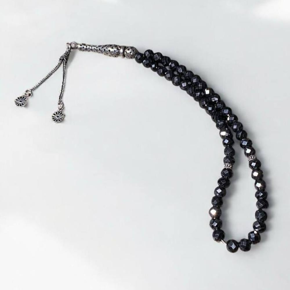 🖤 سبحة موزنايت أسود – هيبة اللون ولمعة الحجر