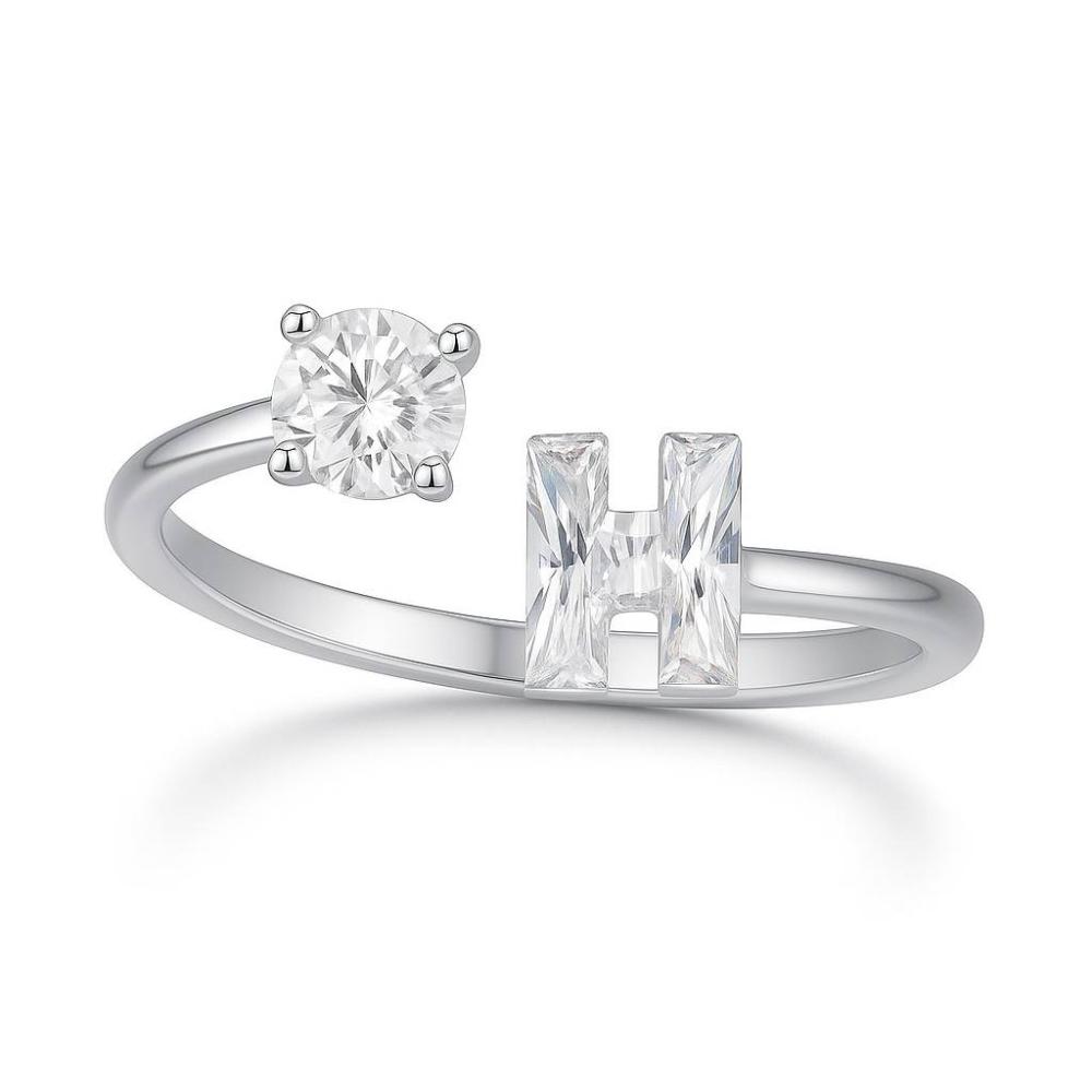 خاتم يعبّر عنك بحرف مشغول من حجر موزنايت صافي بلون D ونقاء VVS1