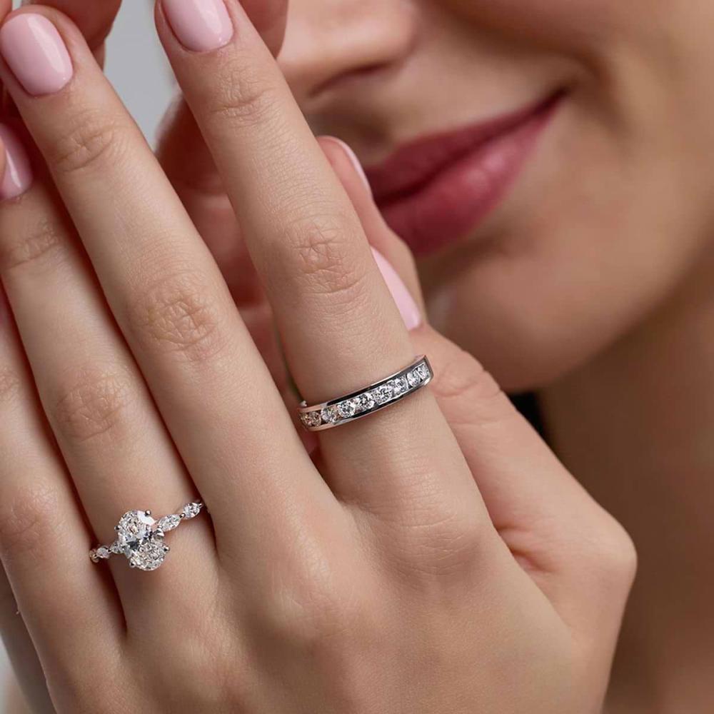 خاتم حلقي فاخر مرصّع بالكامل بأحجار موزونايت لامعة، بوزن إجمالي 0.5 قيراط، ليمنحك بريق دائم لا يخفت. تصميمه المثالي يجعله قطعة يومية راقية أو مكمّلة لأي طقم خطوبة أو زفاف.