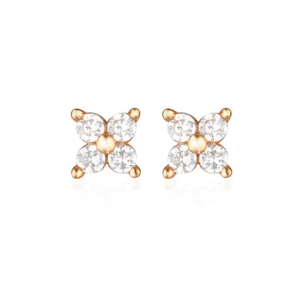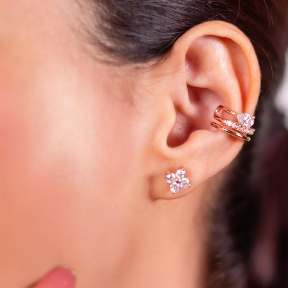 أقراط بتصميم راقٍ مستوحى من بساطة الزهور، مرصعة بأحجار الموزونايت اللامعة التي تعكس ضوءًا يخطف الأنظار. يجمع التصميم بين قاعدة معدنية بلون ذهبي أنيق مع تثبيت محكم للحجر، ليمنحك توازن مثالي بين الفخامة والعملية.