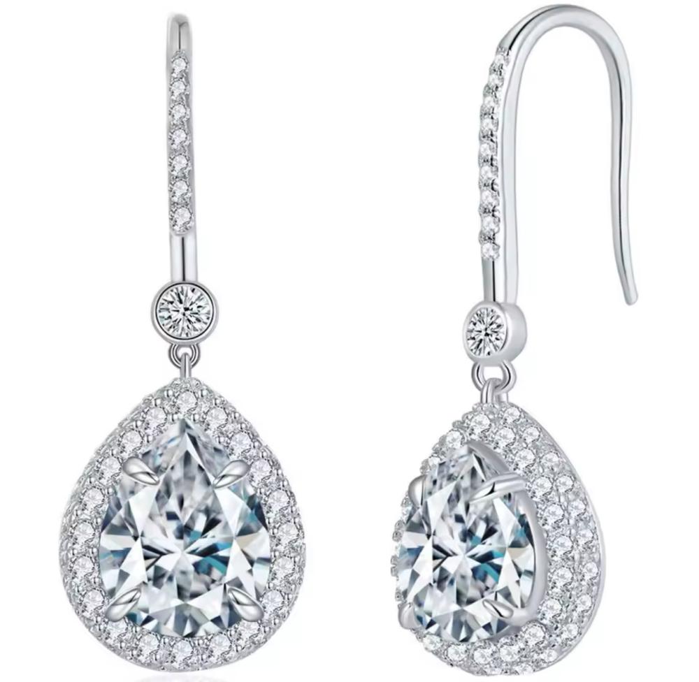 أقراط Kate Bloom بتصميم فاخر على شكل دمعة، مرصعة بالكامل بأحجار الموزونايت المتألقة بلون D ولمعان VVS1 عالي النقاء.