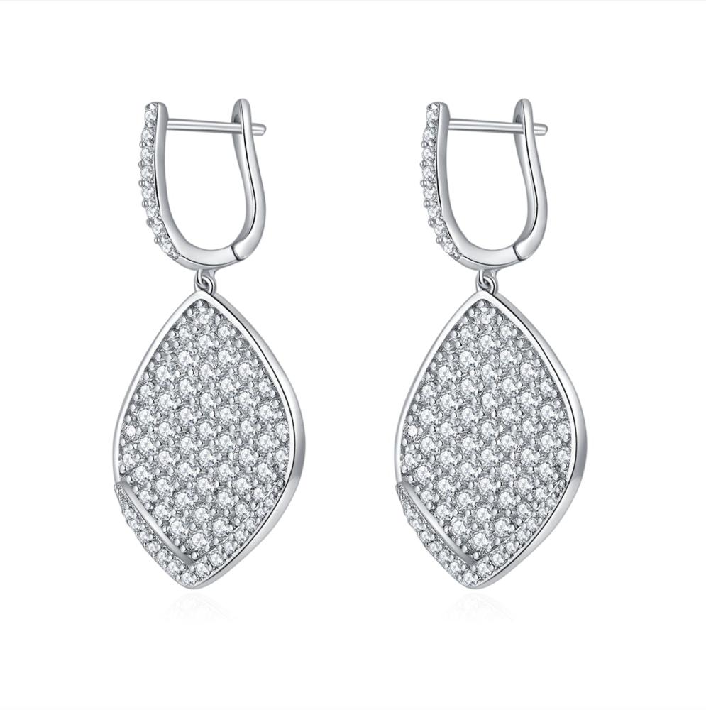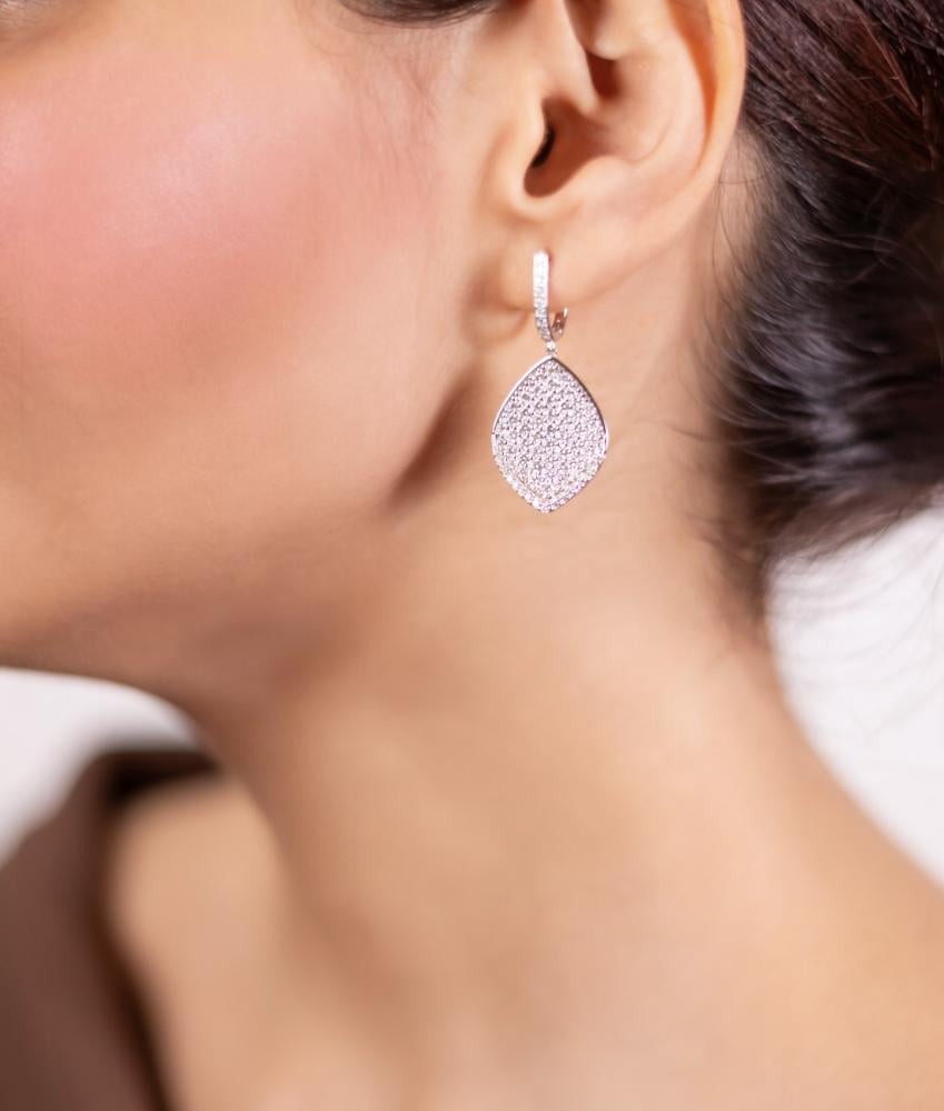 أقراط Leaf Hoop Earrings بتصميم أنيق مستوحى من شكل الورقة، مرصعة بالكامل بأحجار الموزونايت الفاخرة بلون D ونقاء VVS1، لتمنح لمعانًا يخطف الأنظار مع كل حركة.