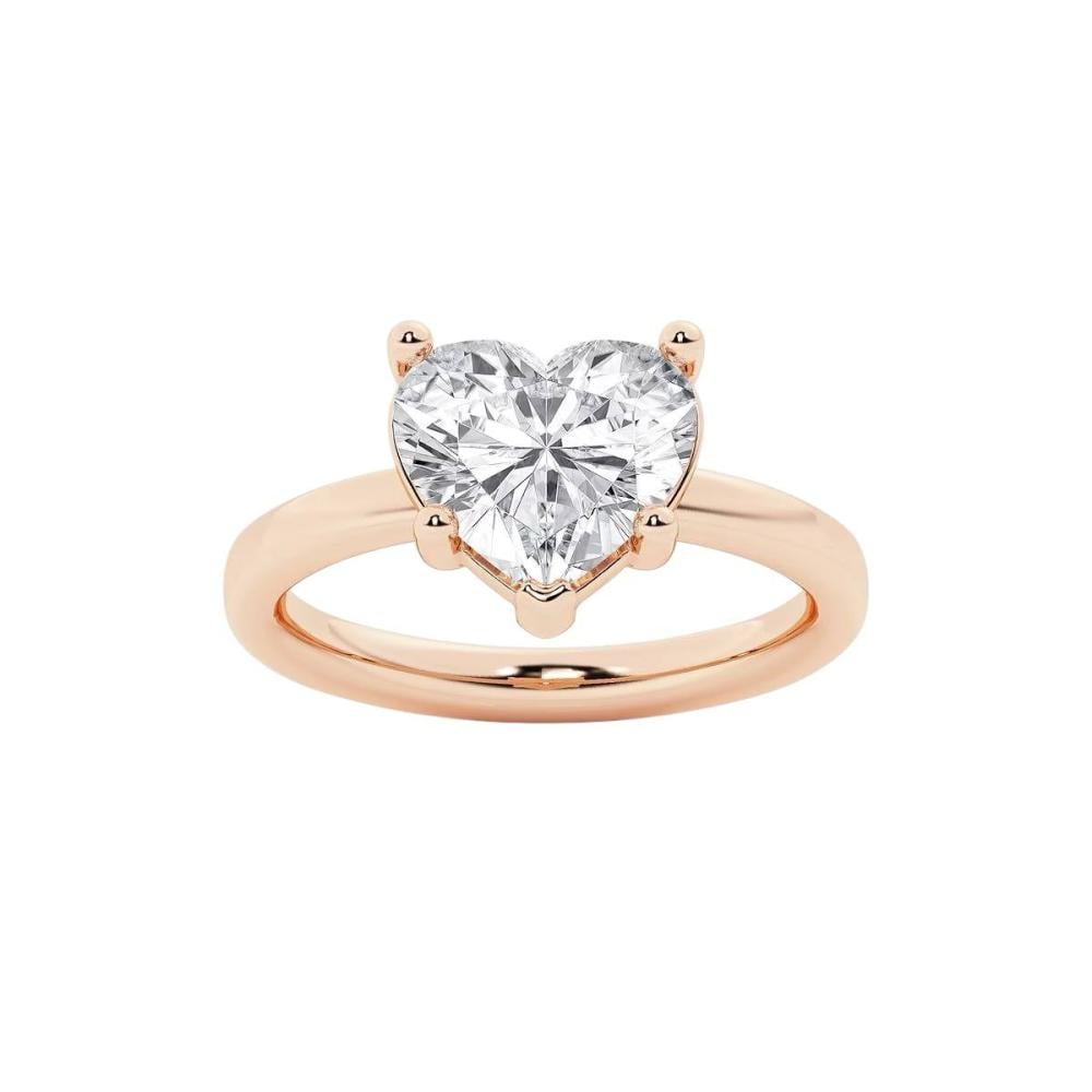 خاتم بتصميم أنثوي ناعم، يتوسطه حجر قلب يرمز للرومانسية الخالدة، ينعكس بلمعة آسرة على طلاء الذهب الوردي الفاخر. قطعة تعانق المشاعر وتترجم الحب إلى مجوهرات.