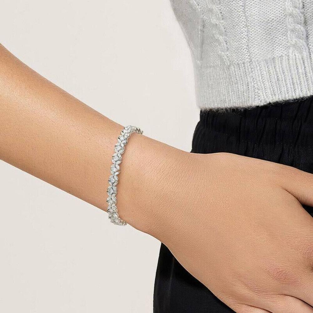 إسوارة تنس فاخرة مصممة بالكامل من أحجار الموزونايت اللامعة بجودة VVS1 Color D، مرصوفة بتصميم متناوب يجمع بين قطع الماركيز والقطع الدائري، ما يمنحها بريقاً استثنائياً مع كل حركة.