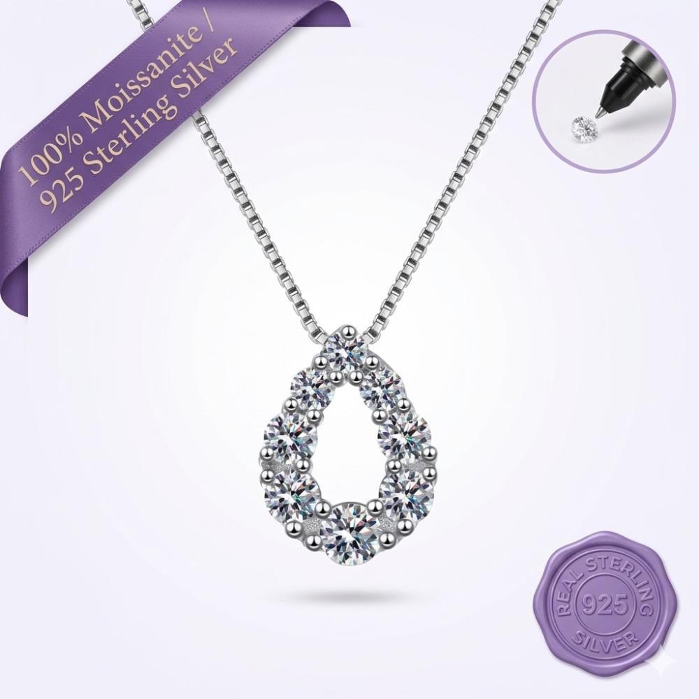 عقد فاخر بتصميم قطرة أنيقة، مرصّعة بأحجار دائرية متناسقة تعكس الضوء من كل زاوية قطعة تجمع بين الرقي والنعومة، مثالية لكل من تبحث عن لمسة فخمة تضيفها على إطلالتها.