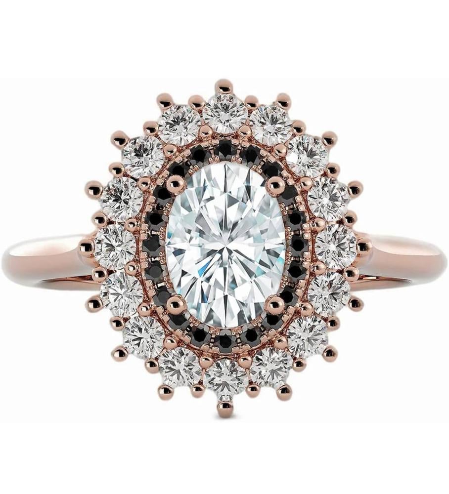 ثنائية ساحرة من الموزنايت الأبيض والأسود على قاعدة روز قولد دافئة