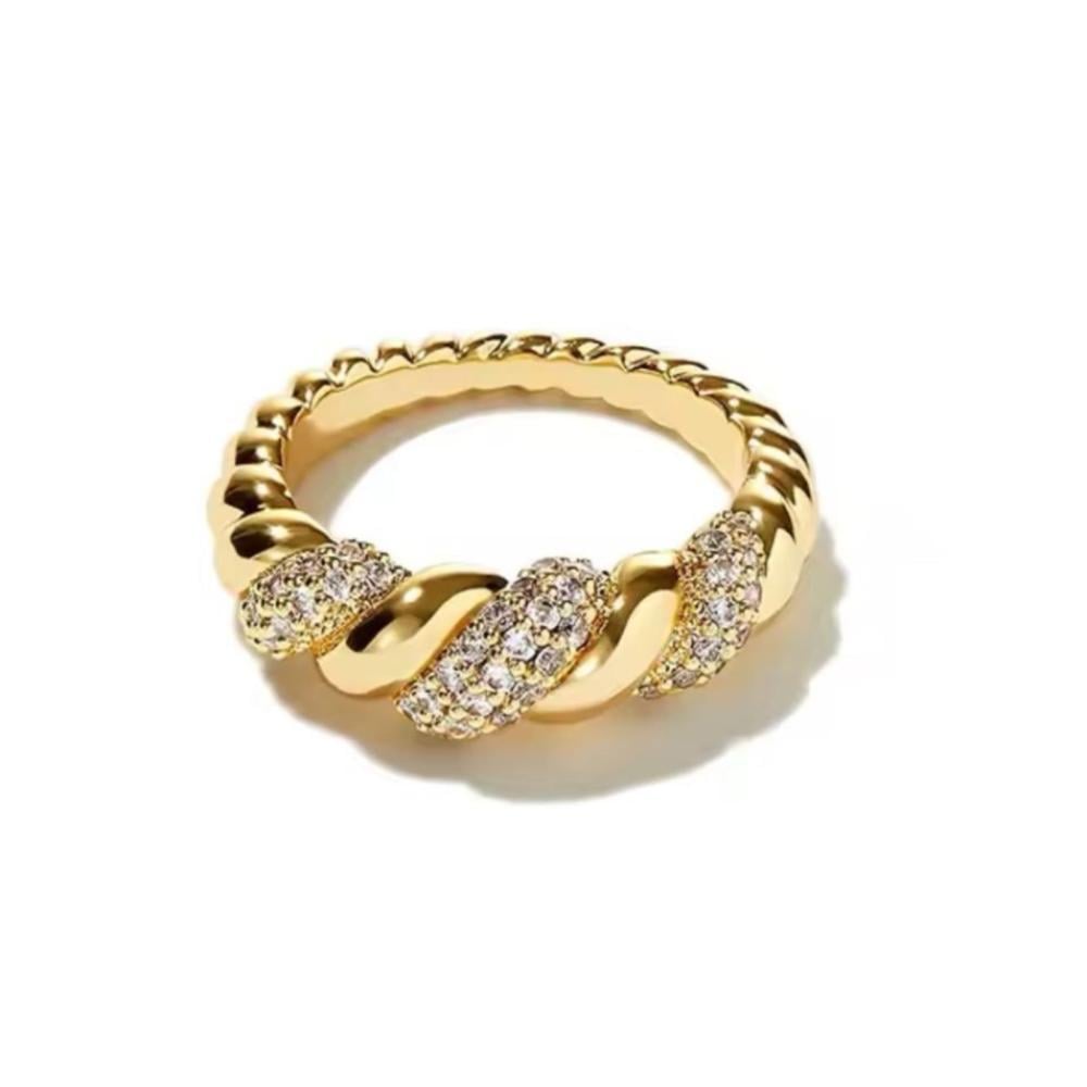 خاتم بتصميم حلزوني من الفضة الاسترليني s925مطلي بالذهب عيار 18 أنيق